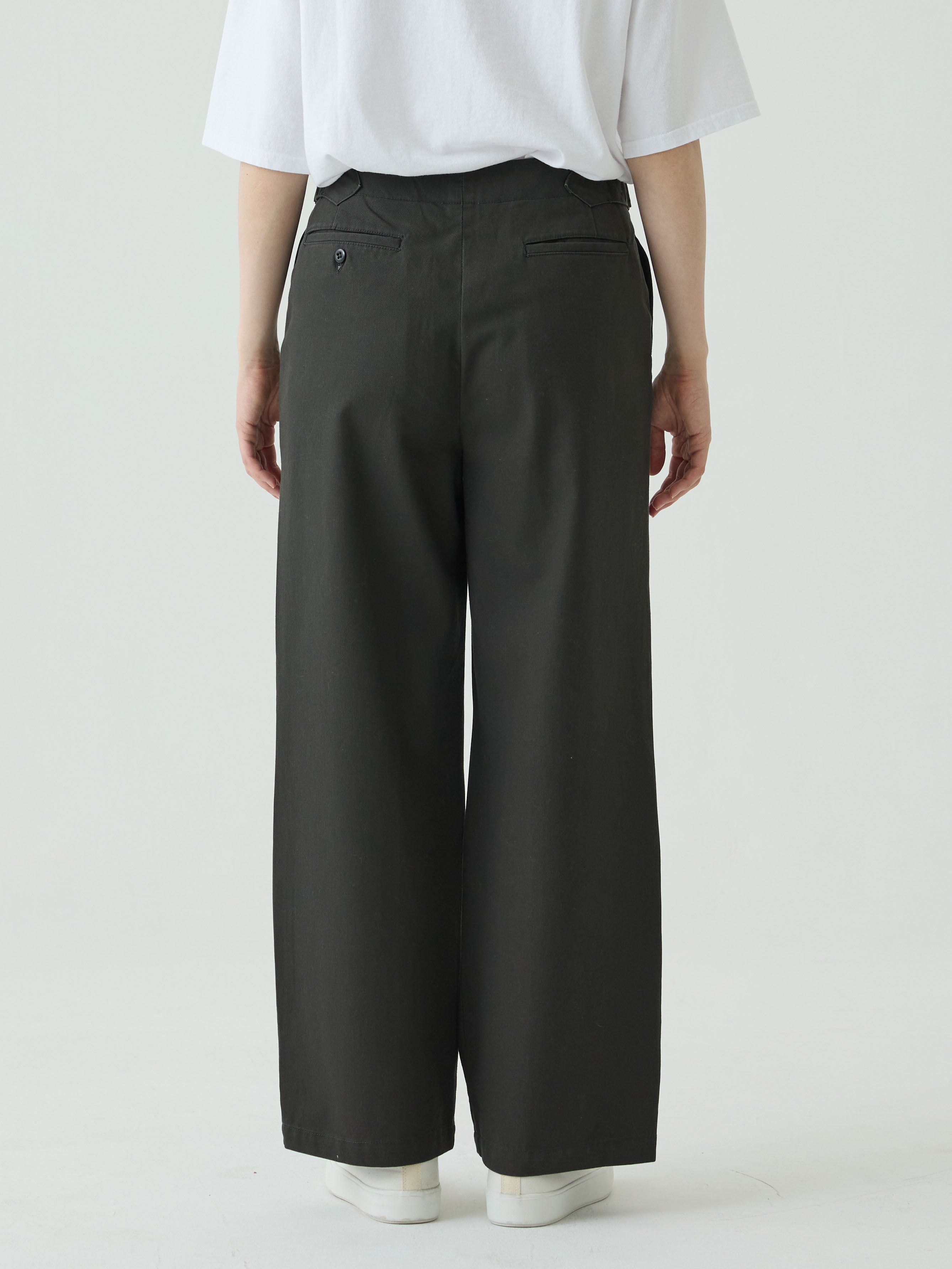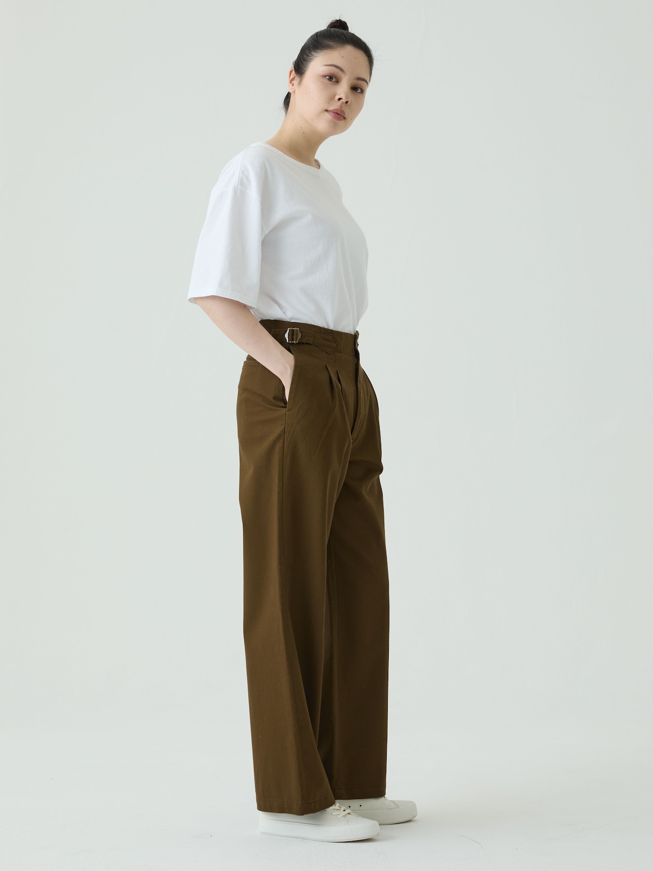 本家トラウザーにも見受けられるサイドアジャスターを大きめにリデザインしアクセントに。