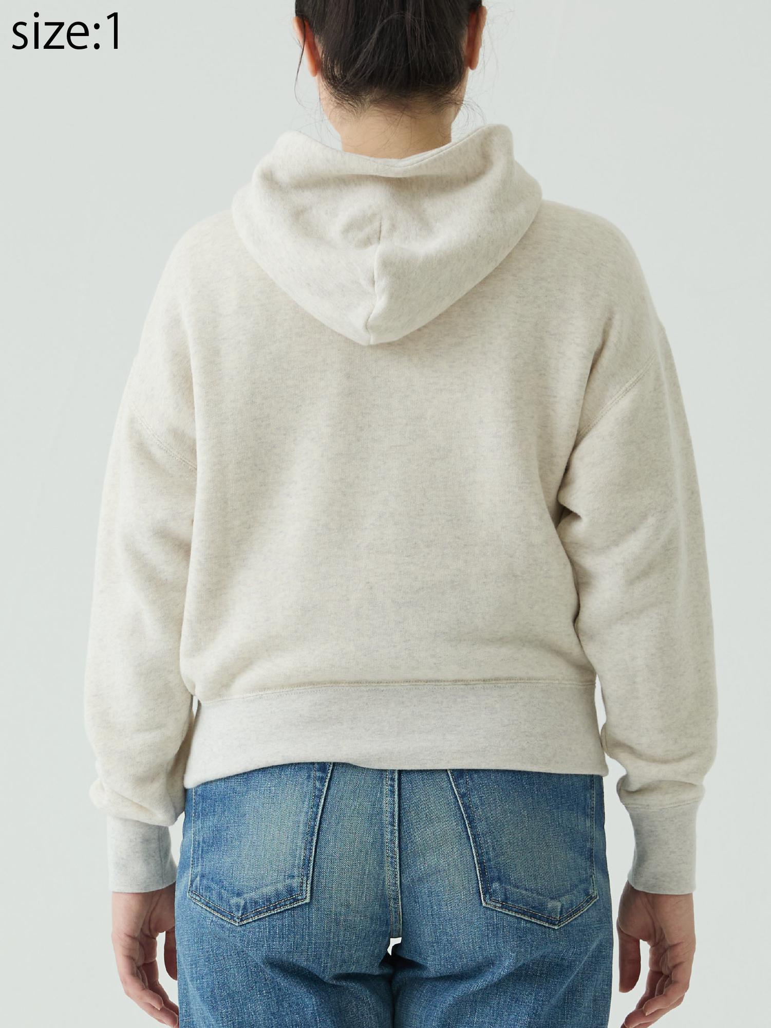 長リブや特徴的なカンガルーポケットなどヴィンテージな雰囲気を残しつつ小ぶりなフードやフロントのジップなど現代のコーディネートにも合わせやすい仕様に。ゆとりのあるシルエットで様々なコーディネートに。