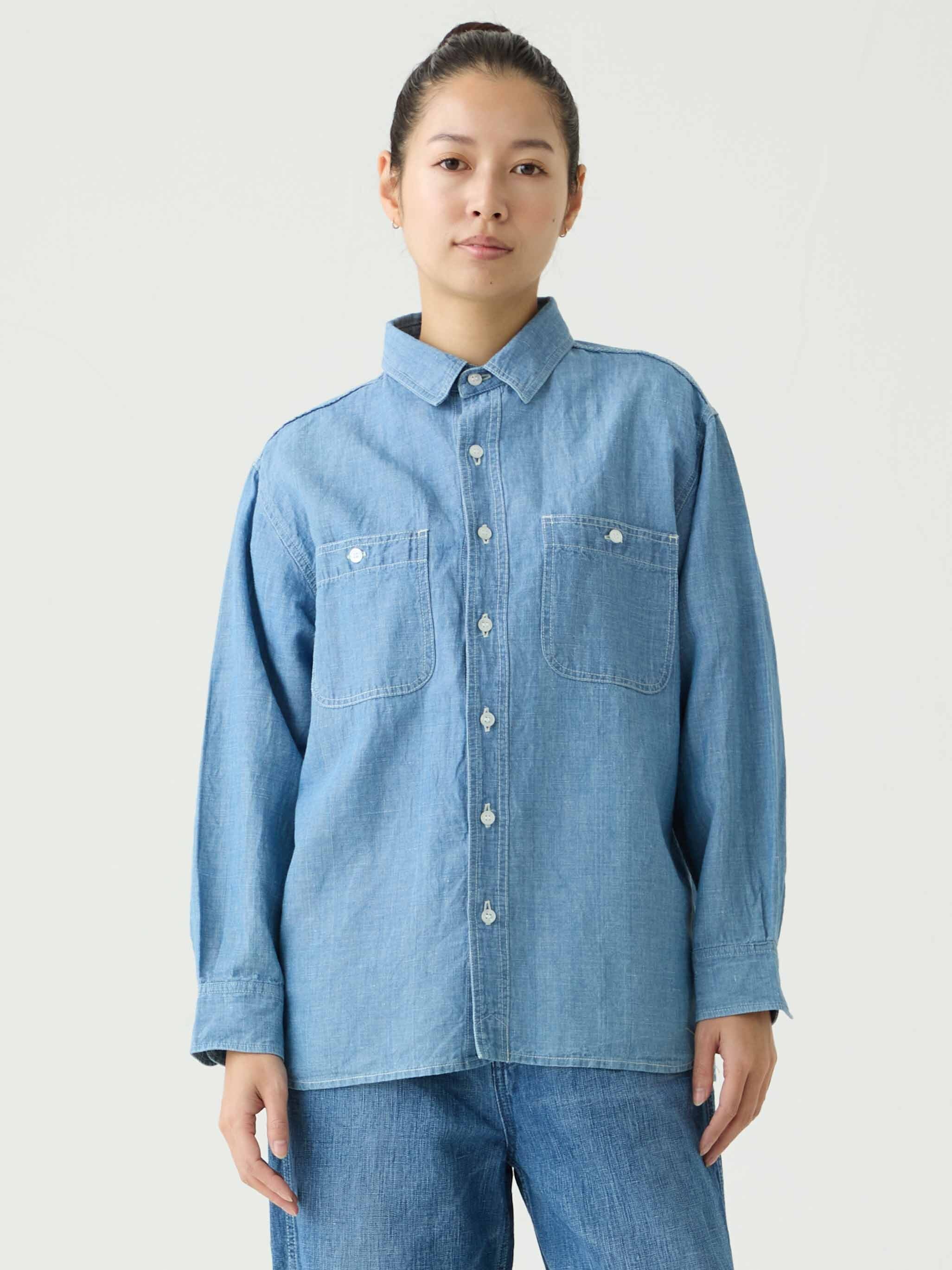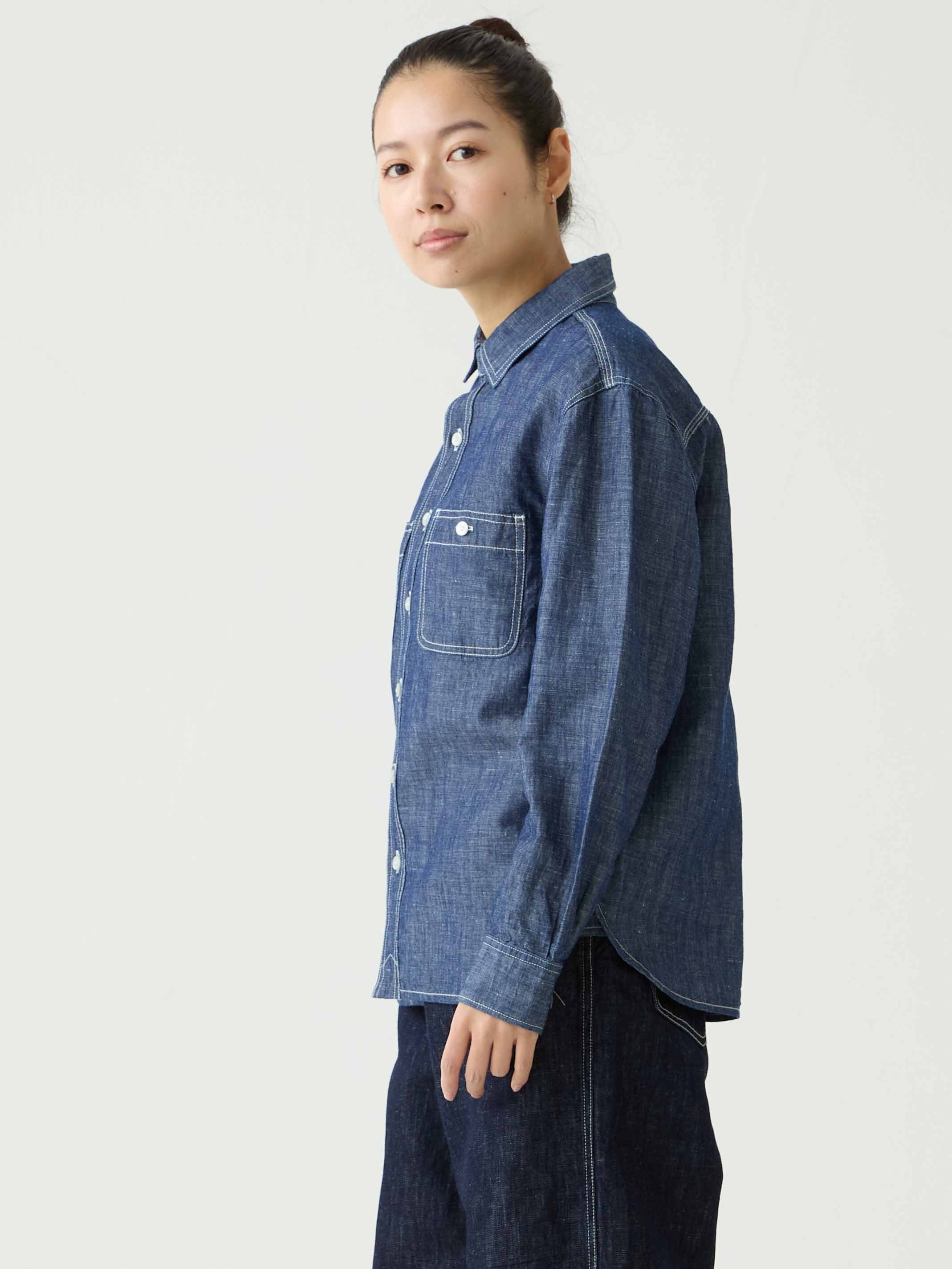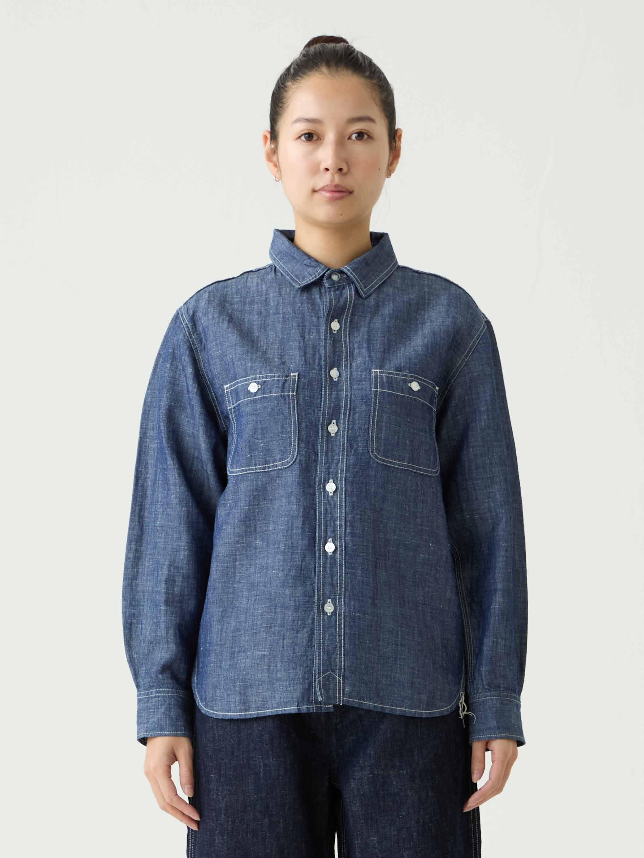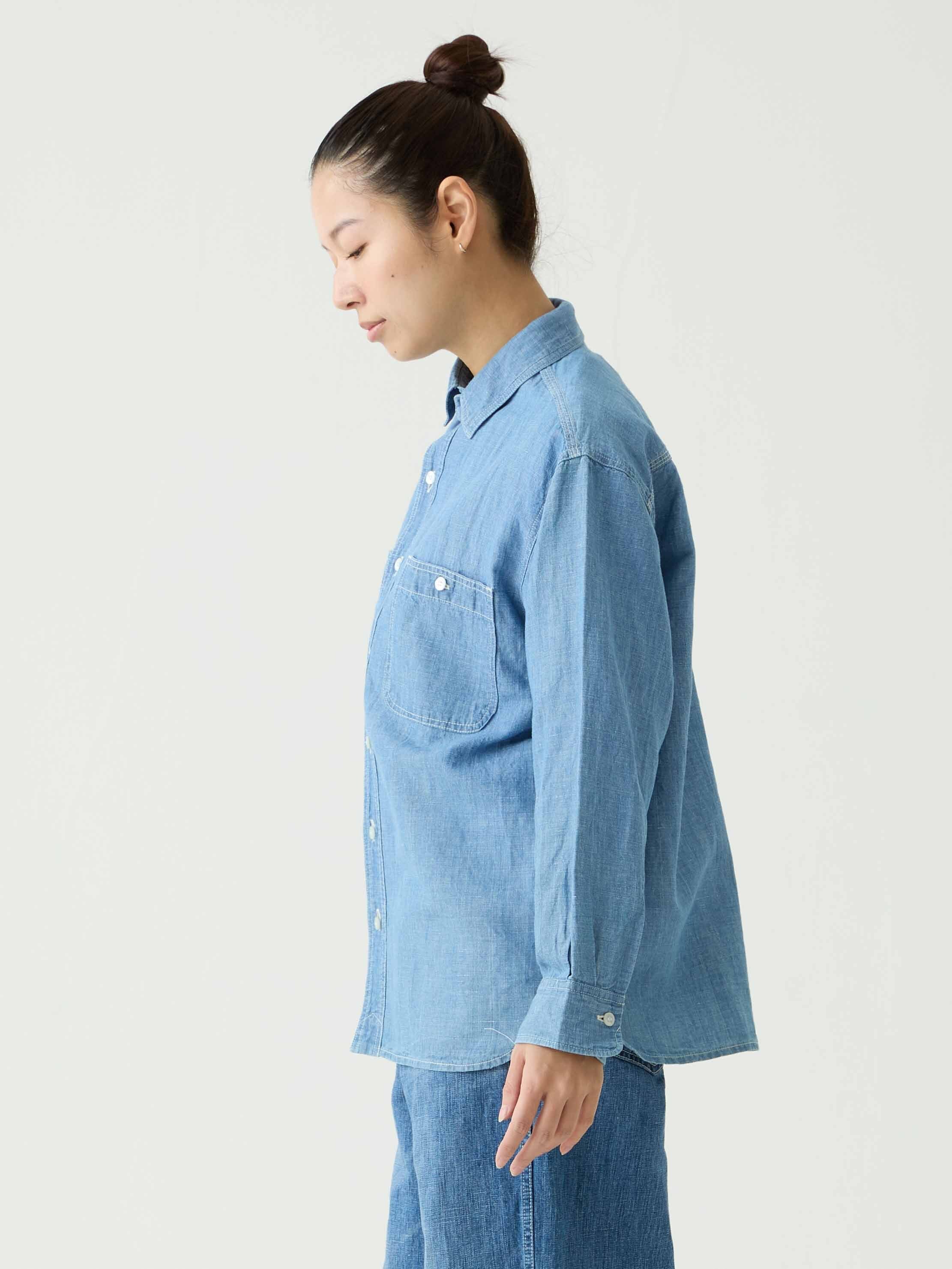 軽量なコットンリネンシャンブレー生地を採用したワークシャツ。