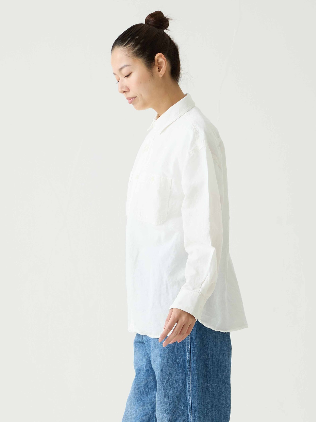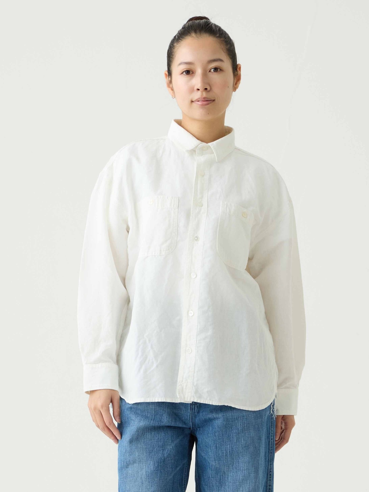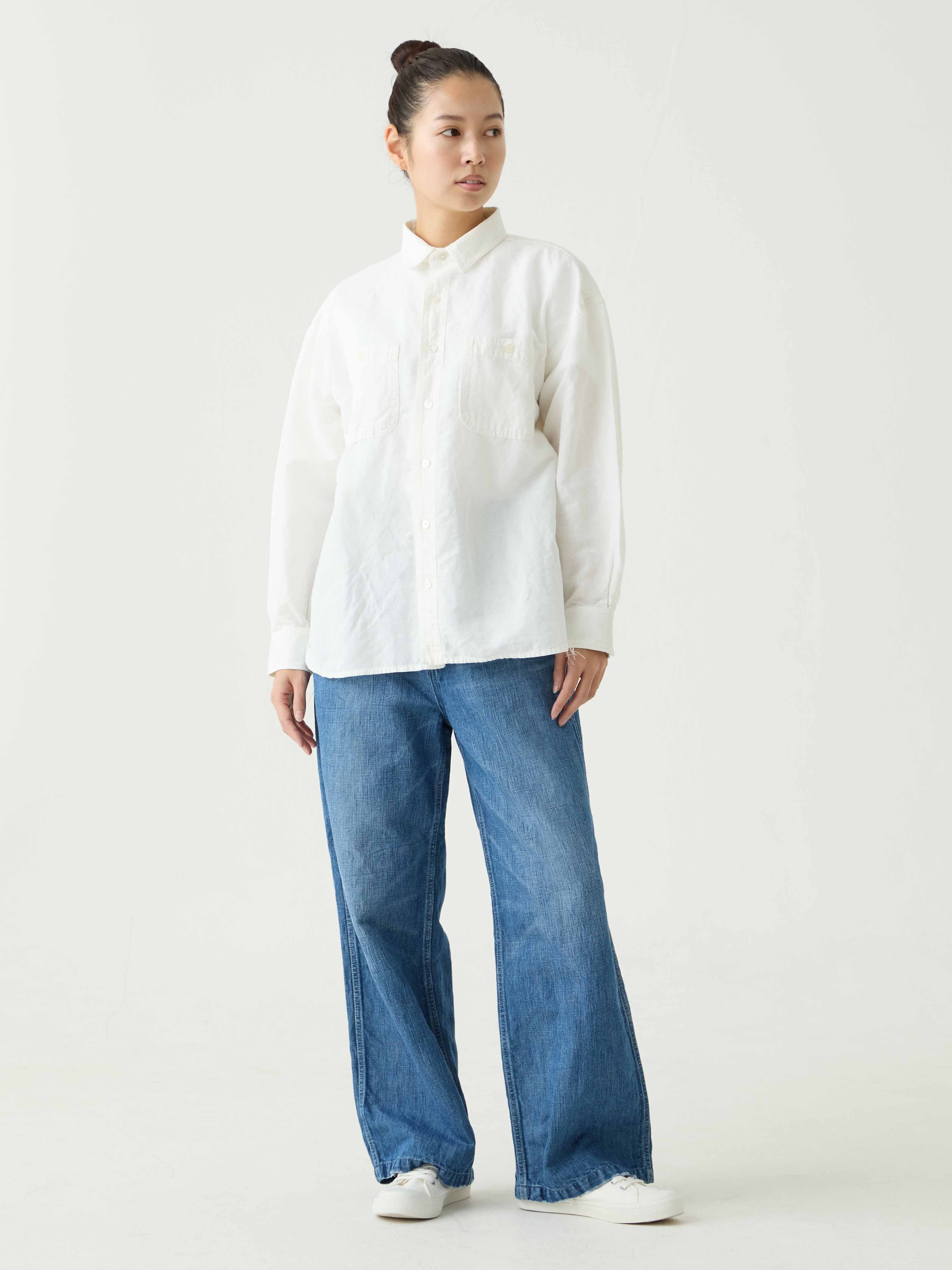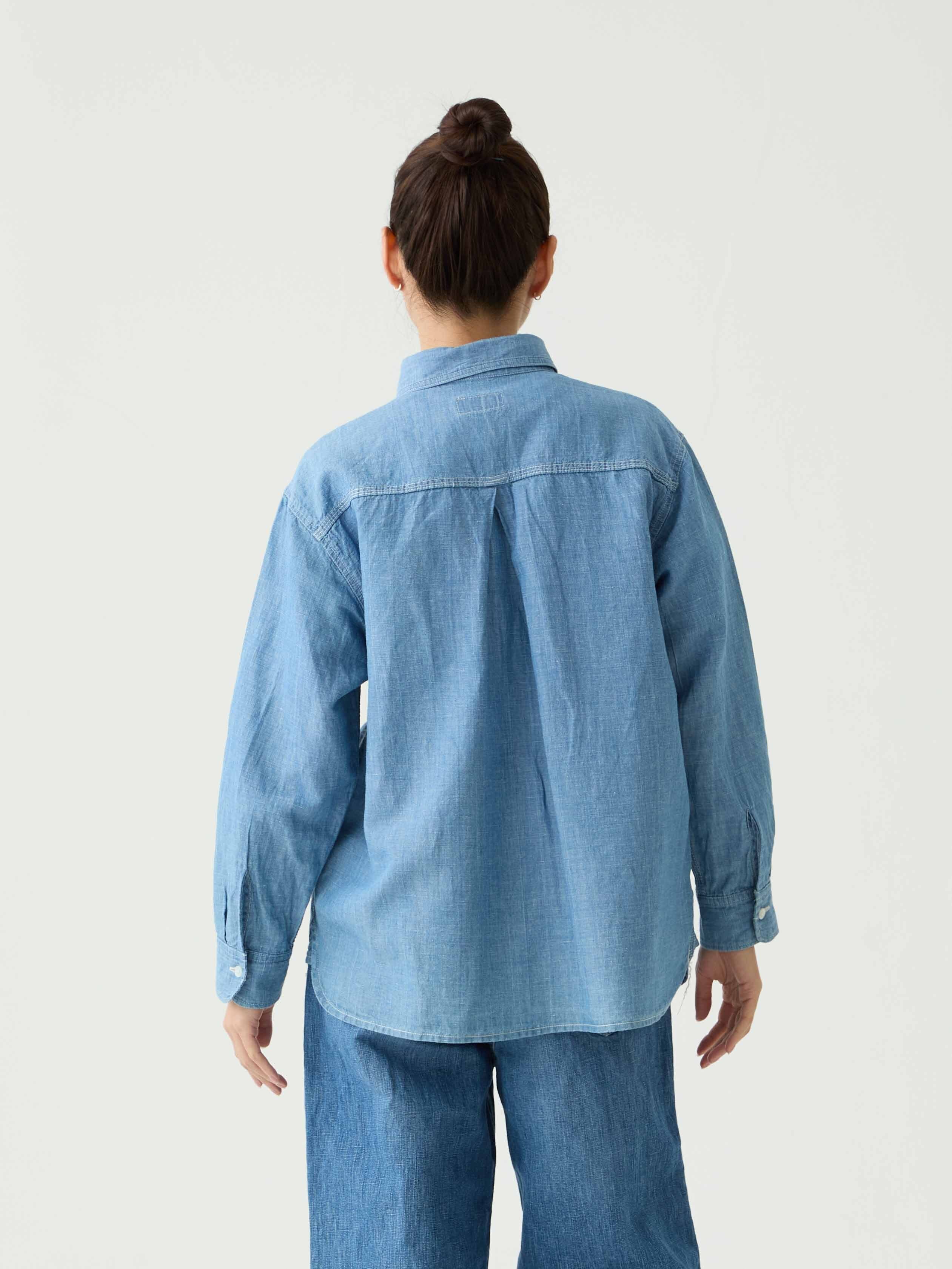 軽量なコットンリネンシャンブレー生地を採用したワークシャツ。