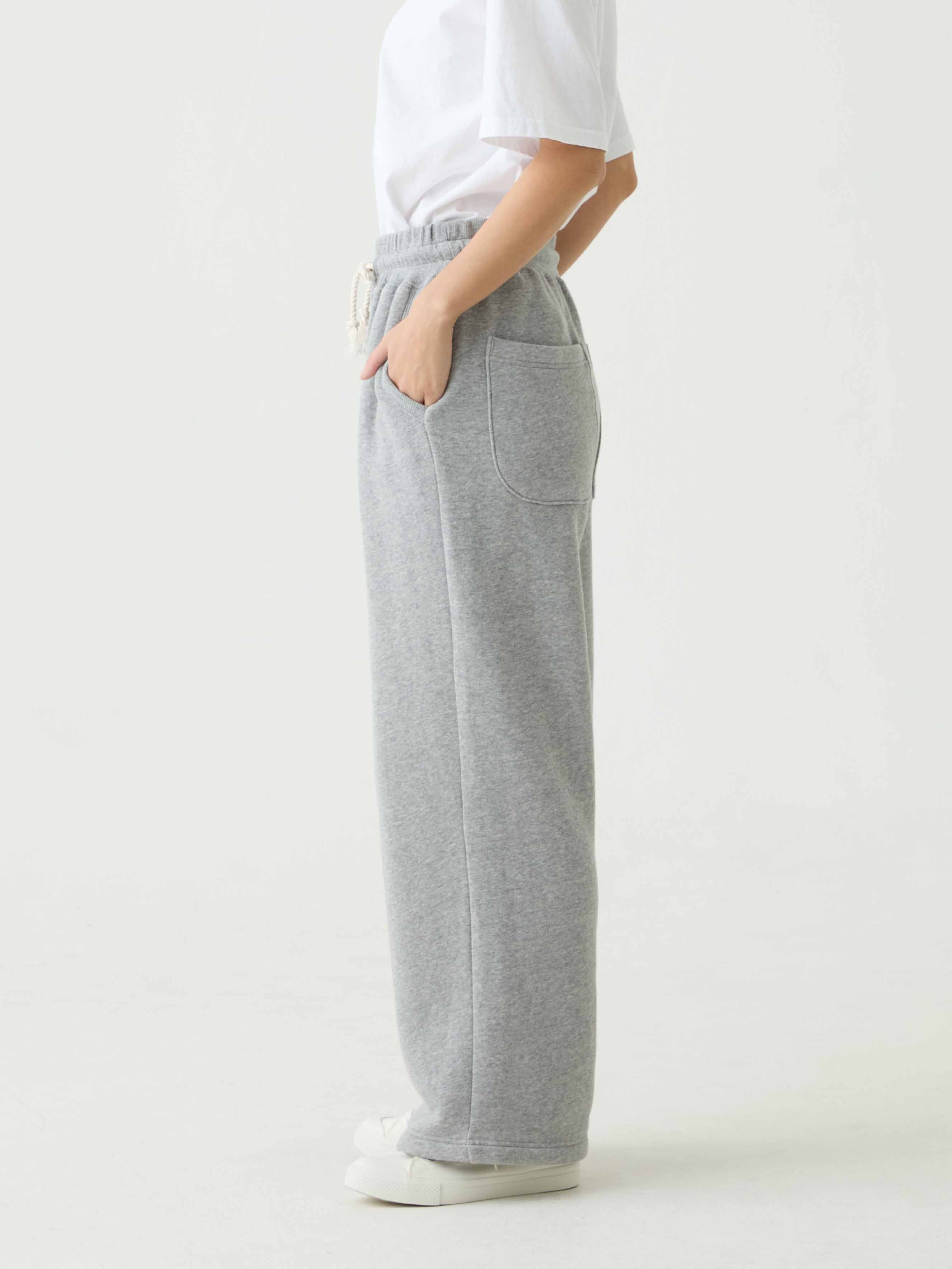 特殊な編み機で編まれた裏毛素材を採用したワイドスウェットパンツ。