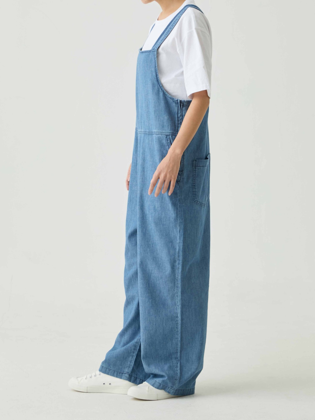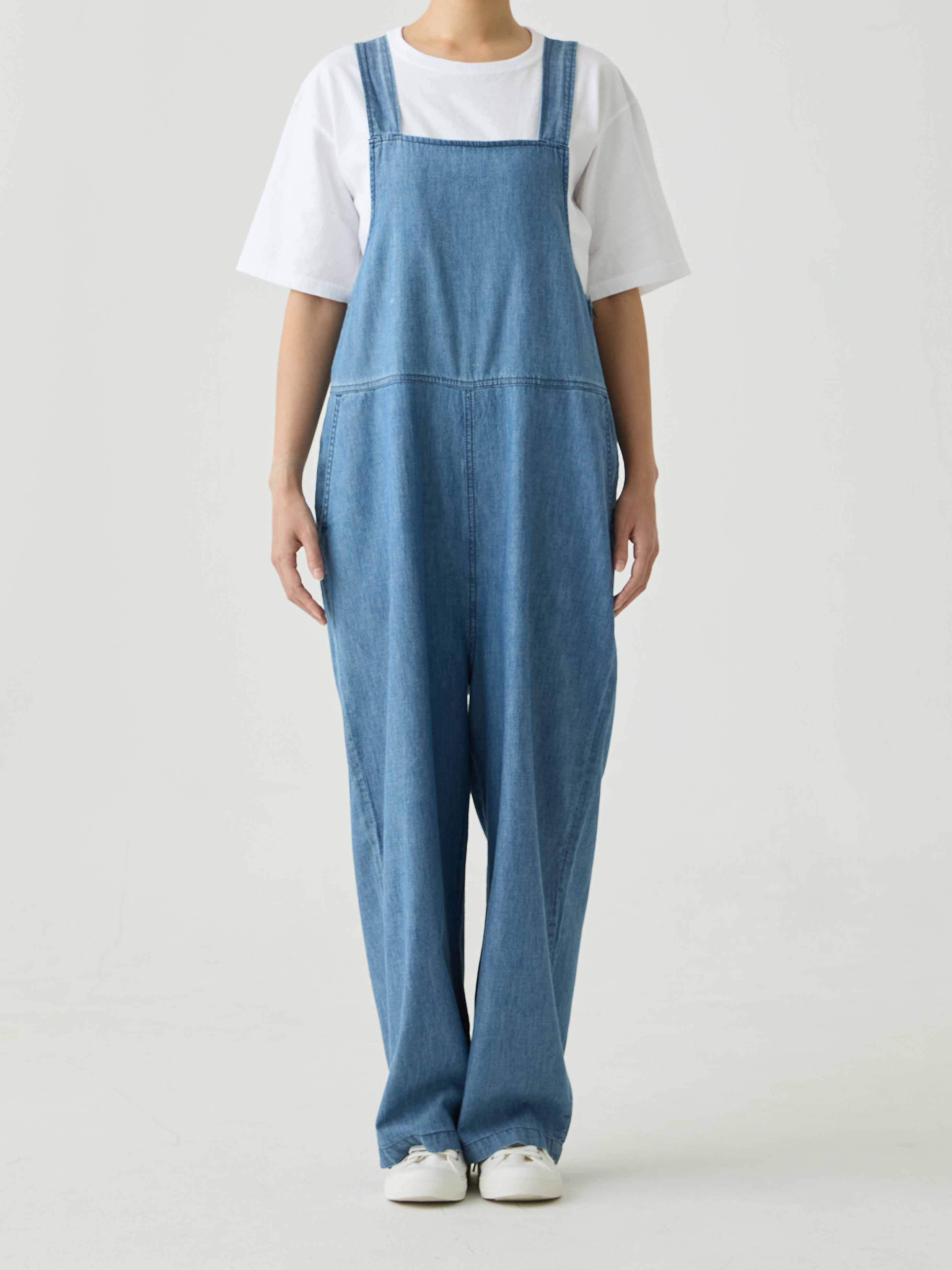 柔らかなブルキナコットン採用のライトウェイトデニムを採用したサロペット。