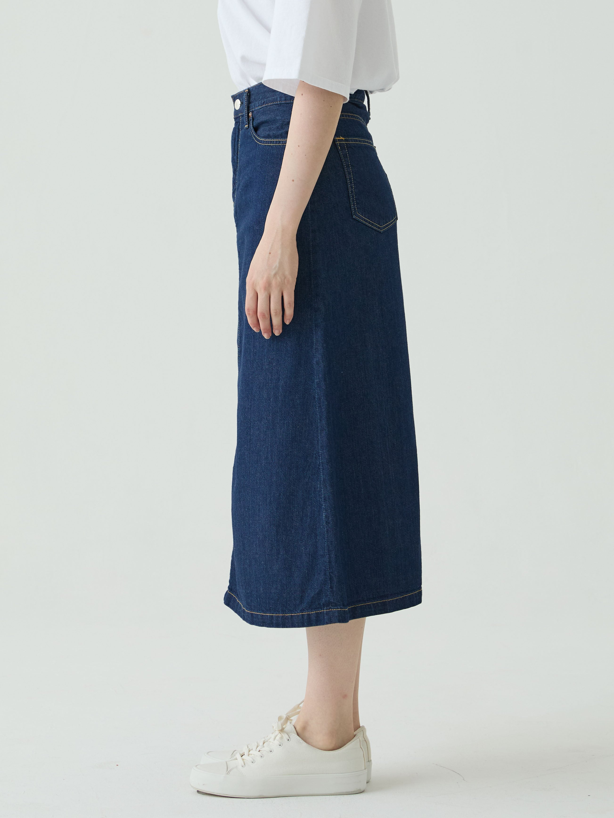 くるぶし丈のややAラインスカート。