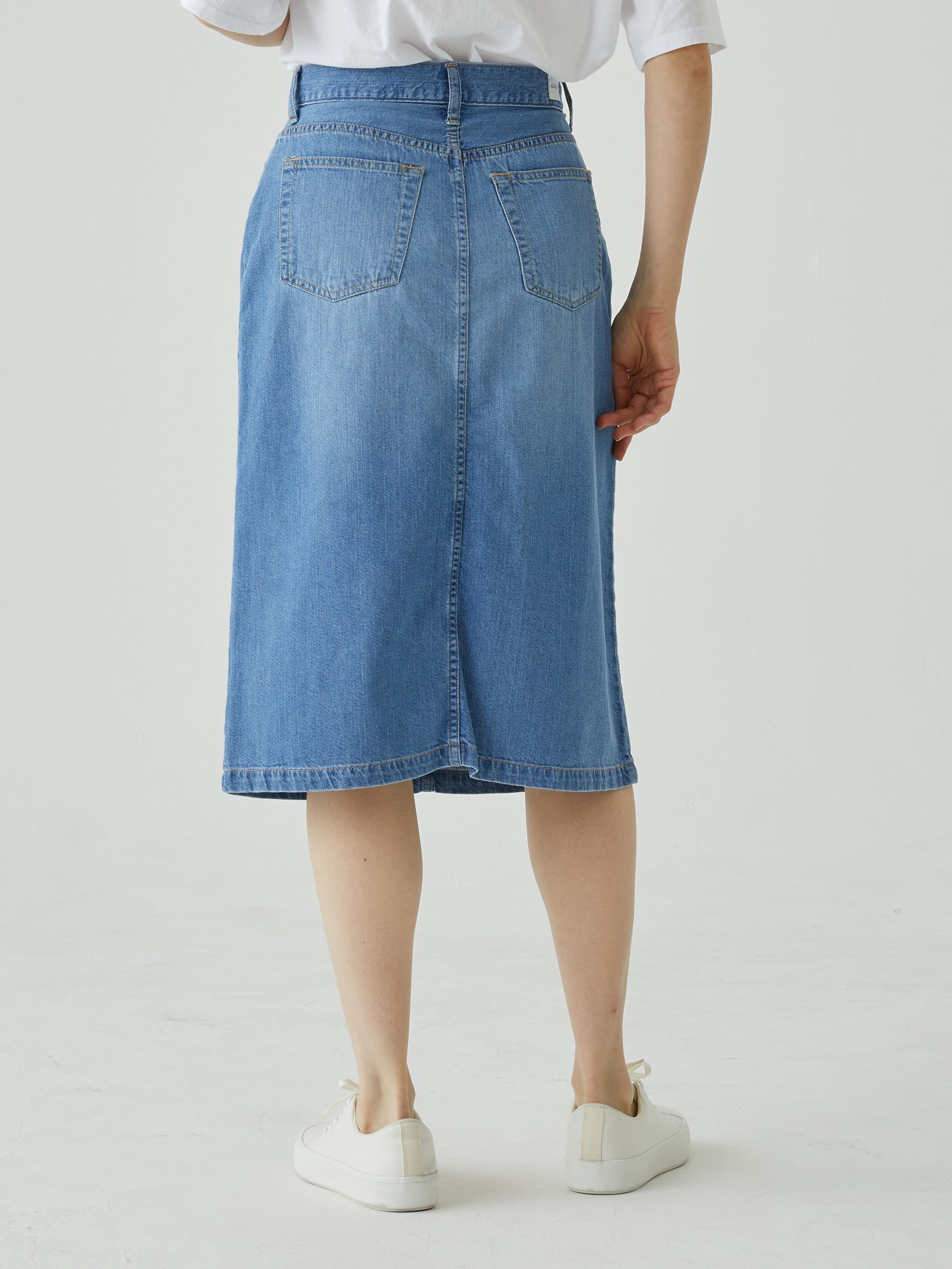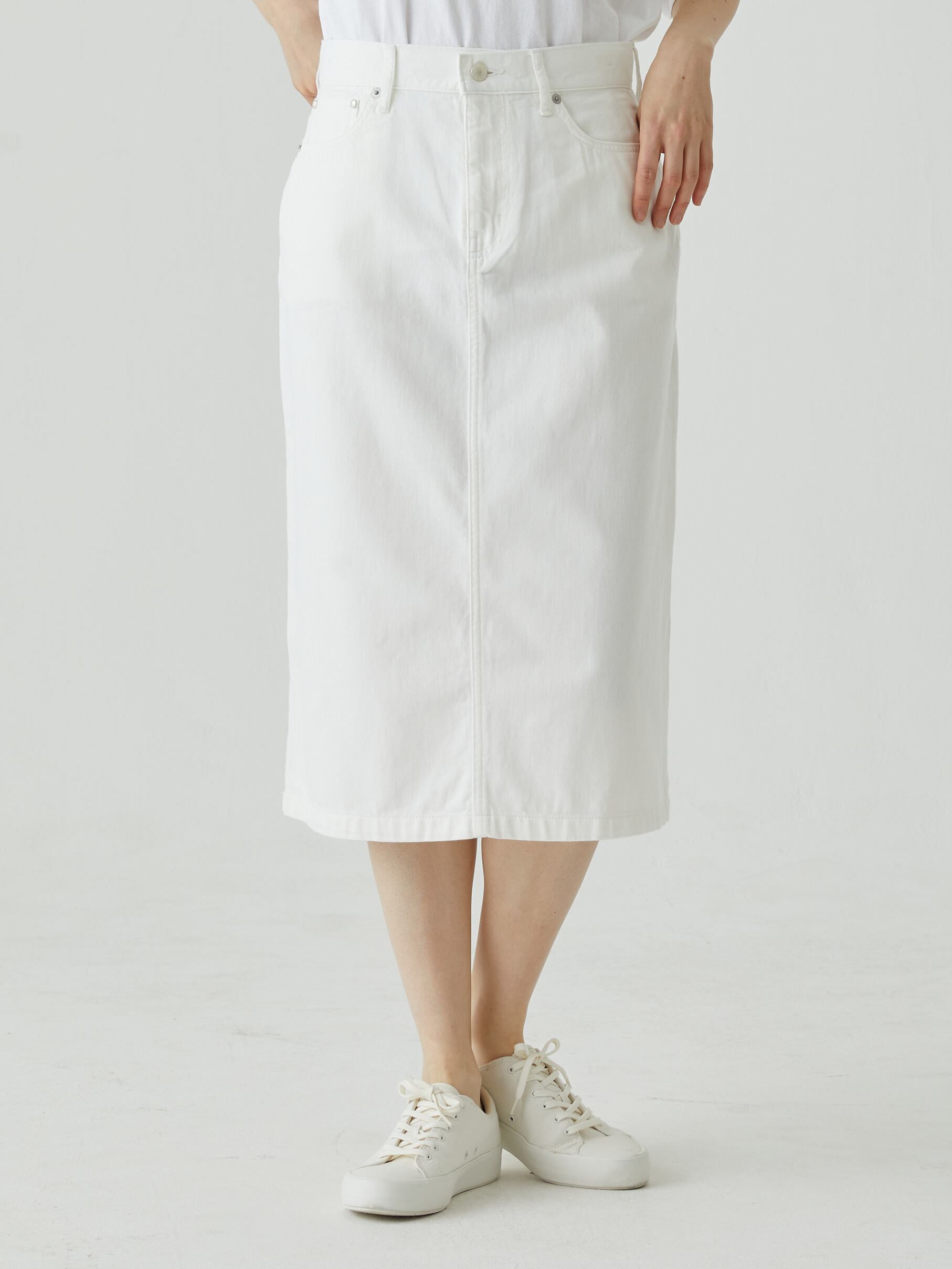 人気のひざ下丈や腰回りのすおえっくはそのままに、ウエストにボタンホールゴムを内蔵しサイズ調整を可能に。後ろ身に入っていたスリットも排しすっきりな見た目に。